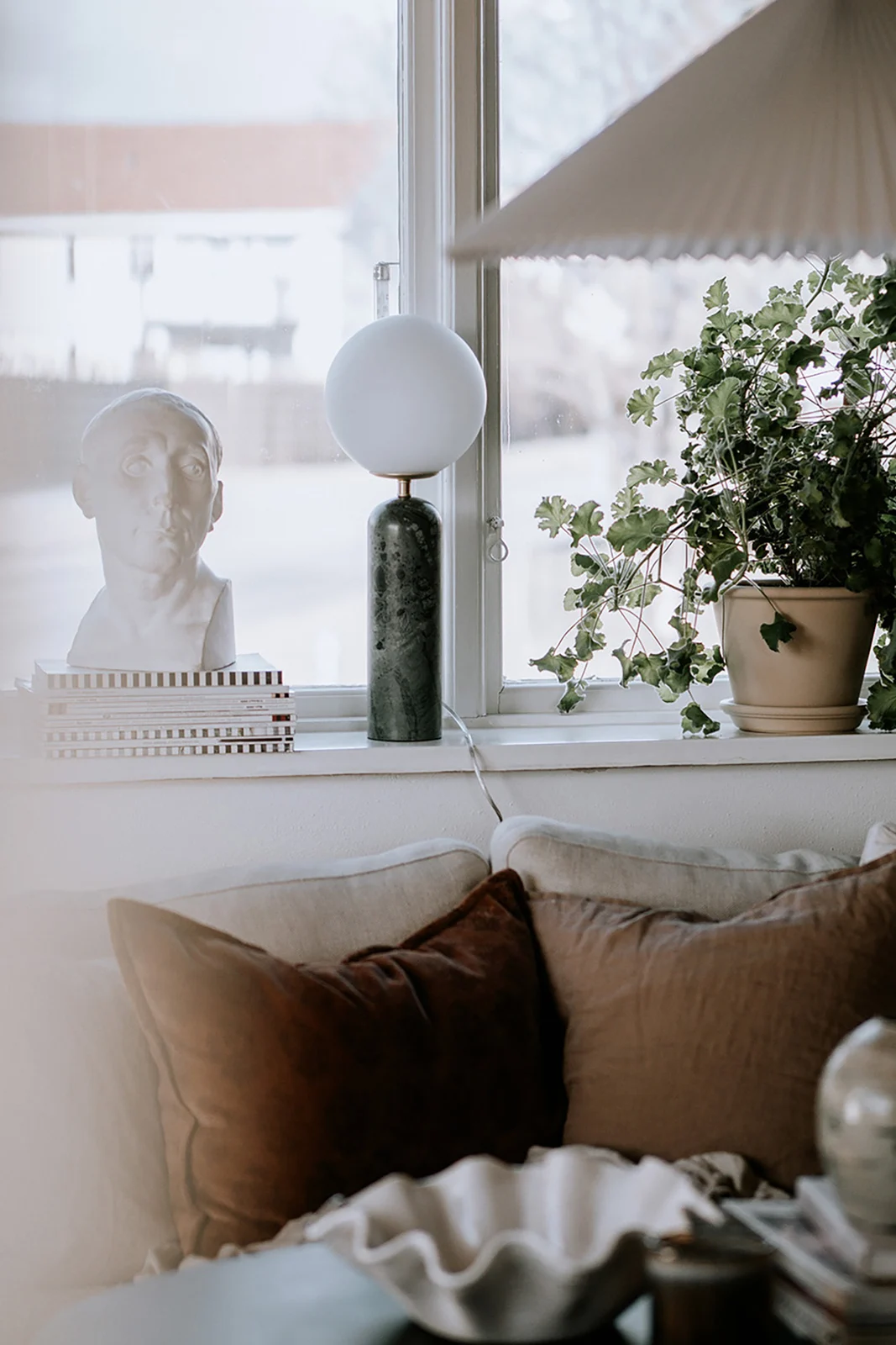 Torrano z podstawą z litego marmuru to luksusowy detal dla Twojego wnętrza. Okrągły kształt klosza ciekawie kontrastuje ze stabilnym kamieniem podstawy. Metalowe detale w kolorze