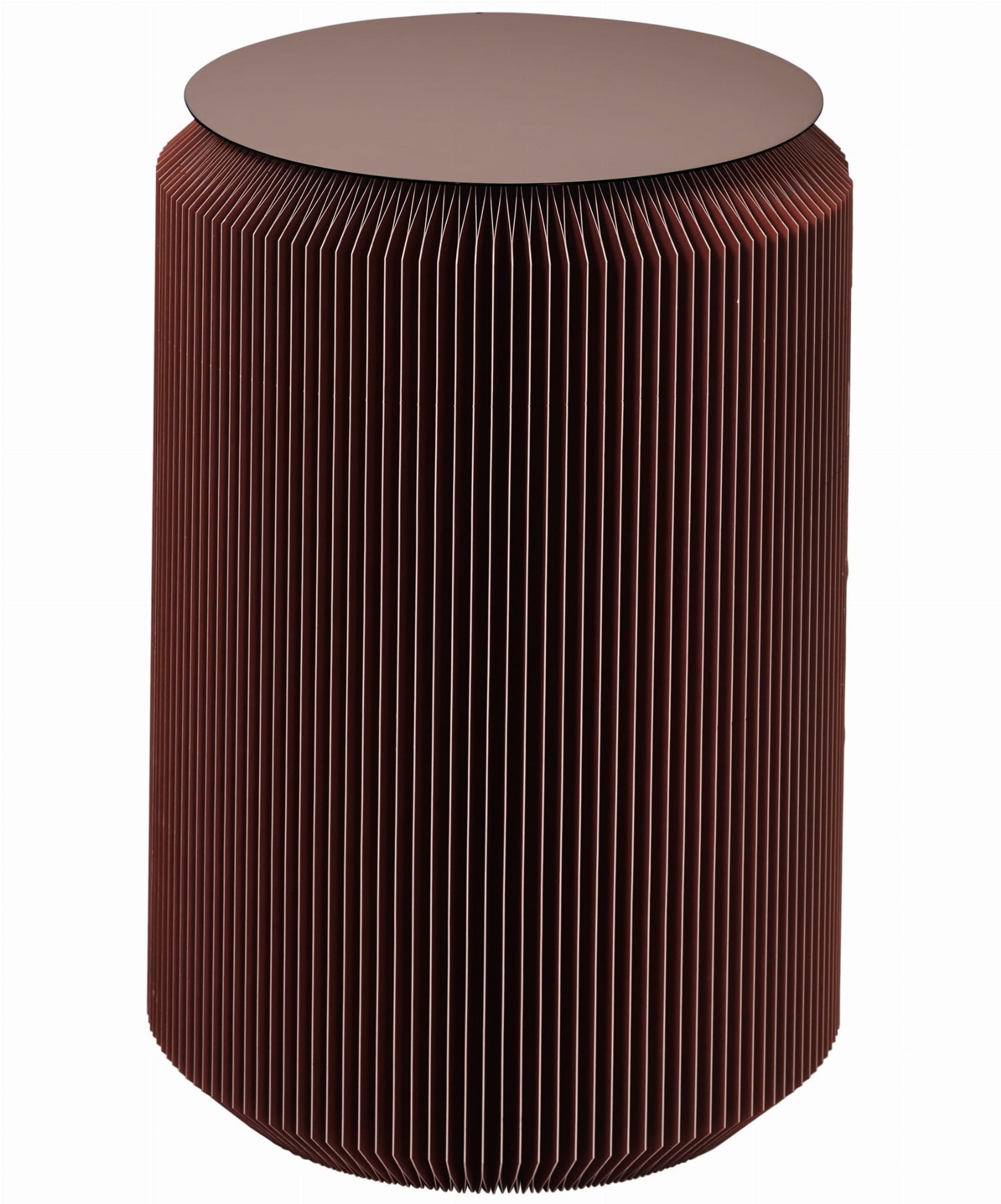 przypominająca wachlarz zapewnia stołowi dużą stabilność, którą dodatkowo wzmacnia metalowa powierzchnia. Kartonowy wachlarz zamykany jest na magnes.